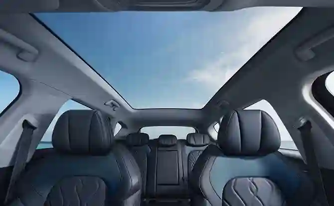 Круглую штуковину над центральной консолью я поначалу принял за часы, но никакого циферблата тут не оказалось. Потому что это - салонная камера. В России она может лишь снимать происходящее в салоне, а еще - контролировать усталость водителя. В Китае у нее есть еще функция Face ID, и для того, чтобы запустить машину, даже ключ в кармане не нужен. В потолок встроена еще одна камера – для наблюдения за задними пассажирами; изображение можно вывести на центральный или правый дисплей. Удобно – всегда знаешь, чем там заняты твои дети… Есть, конечно, и обычный видеорегистратор, а также инфракрасная система ночного видения (она входит в базовое оснащение). Ее «дальнобойность» – 150 - 200 м. На фоне всех этих «фишек», наверное, бессмысленно рассказывать о современных системах помощи водителю, безопасности и комфорта. Их список поистине бесконечен… Добавлю лишь, что огромная панорамная крыша тут лишена шторки. Она не нужна – электрохромное стекло меняет степень светопропускания по погоде и желанию водителя (всего предусмотрено 10 уровней).